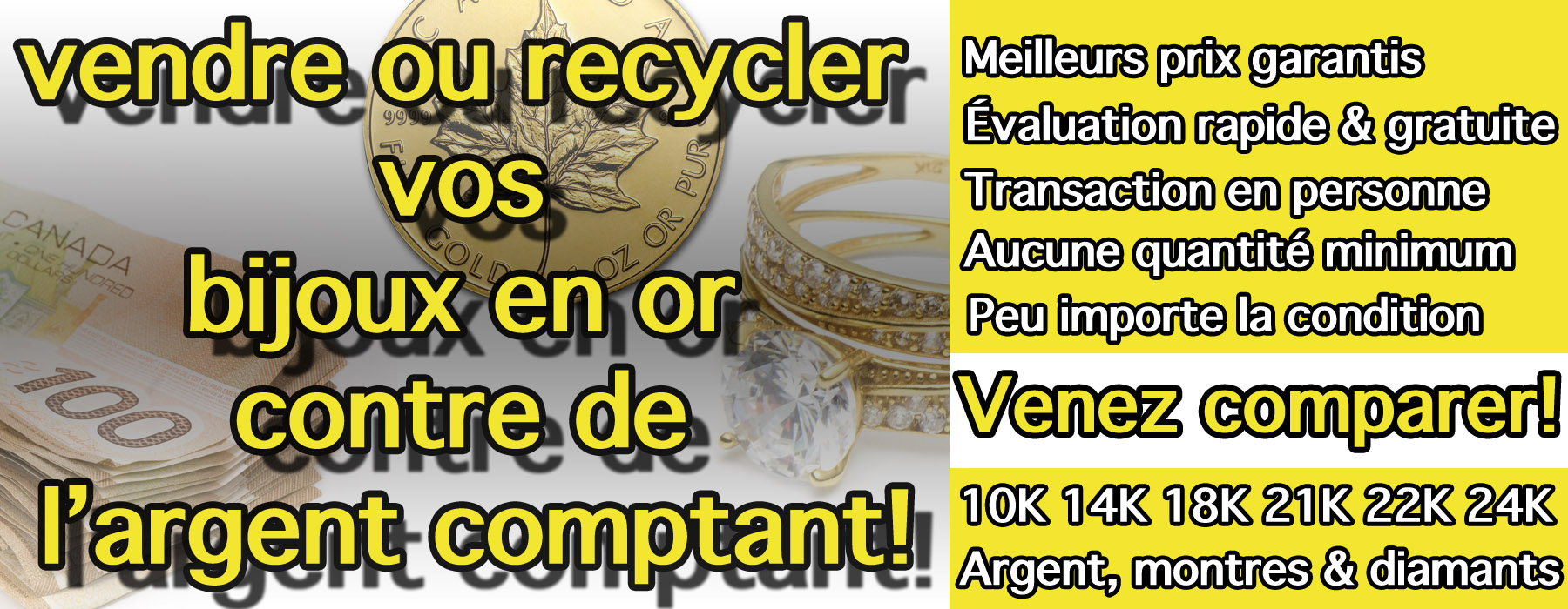 Lorsque le prix des métaux précieux augmente, beaucoup de commerçants en profitent pour s’enrichir davantage et s’improvisent marchands d’or. Mais pour offrir le meilleur prix au client qui désire vendre ou recycler ses bijoux, ça prend de l’expertise. Depuis 20 ans, notre savoir-faire en la matière n’a cessé de s’améliorer. Nous avons les connaissances et les ressources pour évaluer vos bijoux, tant au niveau de la pureté de l’or que de sa valeur en temps réel. Nous sommes qualifiés pour évaluer vos diamants, leur grandeur, leur poids, leur pureté et leur coupe. Ainsi, vous serez toujours en mesure d’obtenir le maximum pour vos bijoux. Osez comparer, vous aussi deviendrez des clients satisfaits.